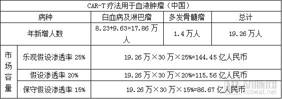 3.2.3 中国CAR-T市场预测:总容量约800亿人民币,其中血液肿瘤约150亿人民币