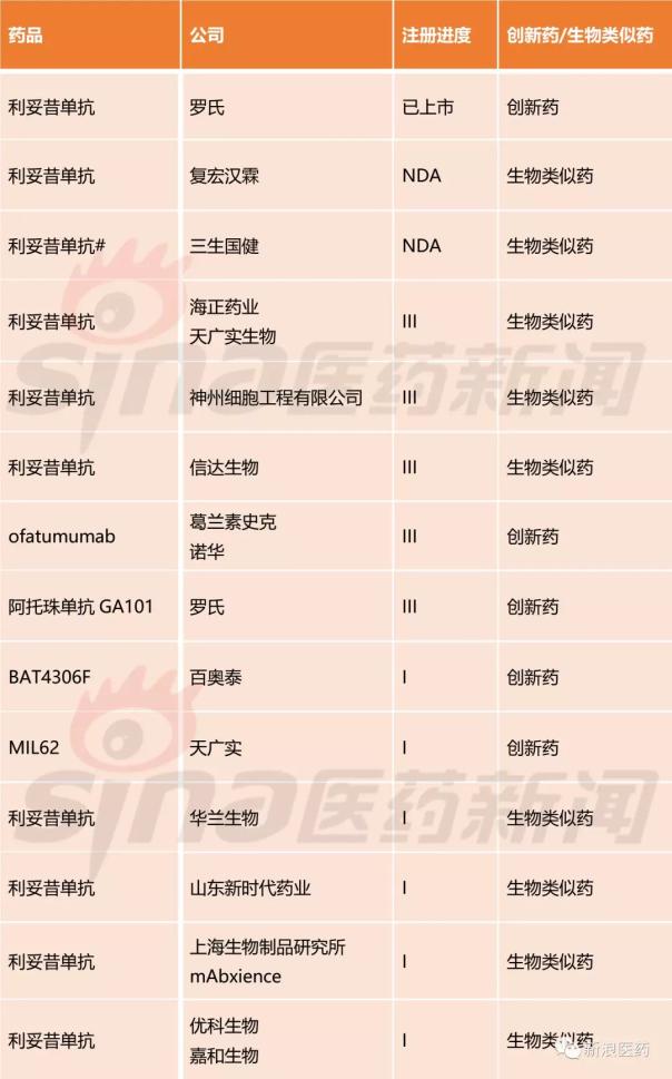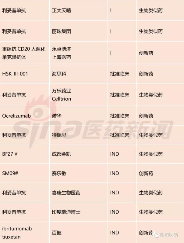 笔者根据公开渠道,整理了目前国内在注册申报的CD20单抗药物,其中,国内已上市2款,原研产品罗氏美罗华(利妥昔单抗)国内已上市18年;三生国健利妥昔单抗生物类似药曾报产(撤回),5款处于3期临床,9款处于1期临床。