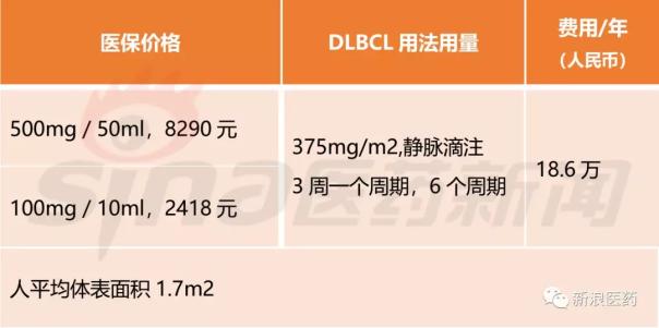 2017年医保准入谈判后,利妥昔单抗500mg/50ml的价格为8290元人民币,降价幅度高达58.45%,年费用在18.6万人民币。