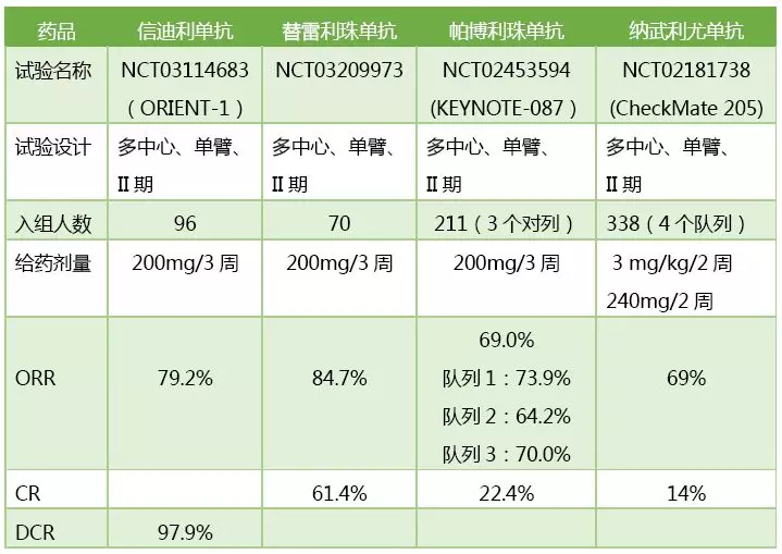 部分PD-1单抗治疗cHL临床数据