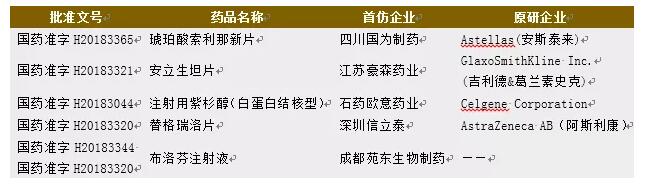 表1. 目前2018年国内批准上市首仿品种(不含注册分类6)