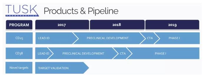 Tusk公司的药物研发管线(图片来源:Tusk公司官网)