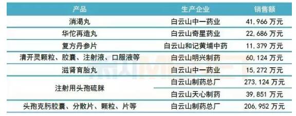 表3:2017年中国公立医疗机构终端白云山部分销售额过亿产品情况