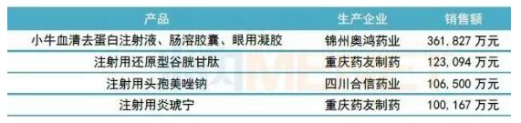 表6:2017年中国公立医疗机构终端复星医药部分销售额过10亿产品情况
