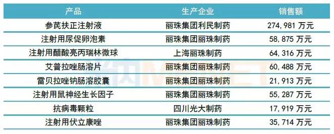 表8:2017年在中国公立医疗机构终端丽珠集团部分销售额过亿产品情况