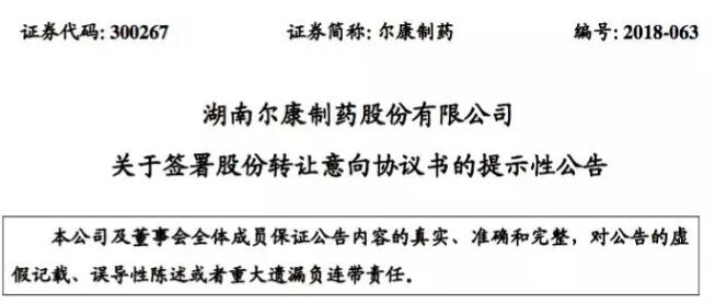 9月28日,尔康制药发布公告称,公司与九势制药、时明昀签署了《股份转让意向协议书》,拟通过股份受让的方式受让时明昀所持有的不低于51%的九势制药股份。