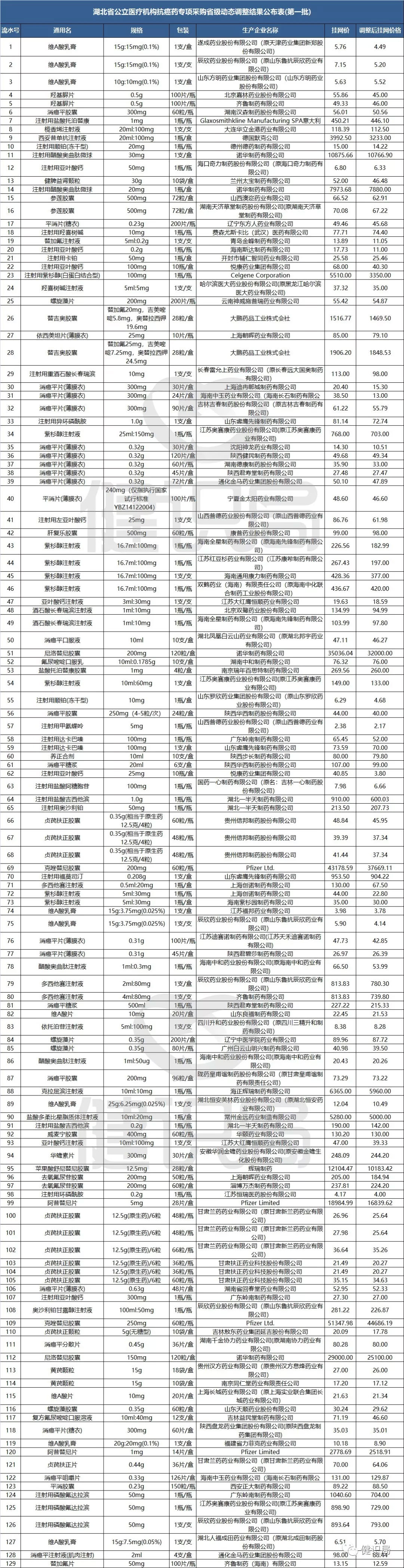 据健识君梳理发现,此次湖北暂停挂网的129个药品涉及66个品种,92家生产企业,包括诺华、默克、费森尤斯卡比、辉瑞等企业。