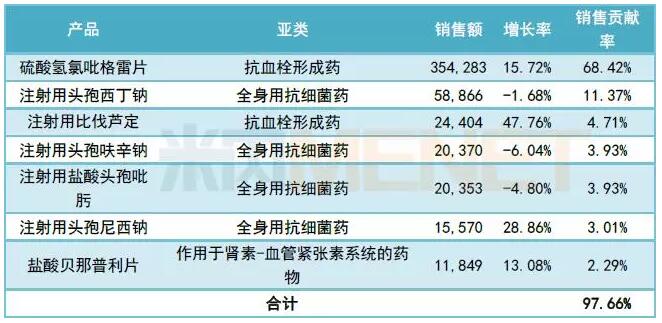 据米内网数据显示,2017年在中国公立医疗机构终端,信立泰有七个产品销售过亿,其中硫酸氢氯吡格雷片的销售额超过35亿元,最近几年的市场份额保持30%左右。