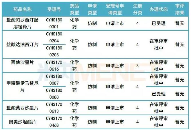 2018年6个仿制药上市申请在审评路上