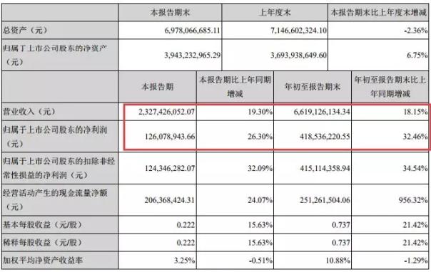 年初至报告期末营业收入为6619126134.34(66.19亿)元,同比增长18.15%。年初至报告期末归属于上市公司股东的净利润 4.185亿(元),同比增长34.46%。