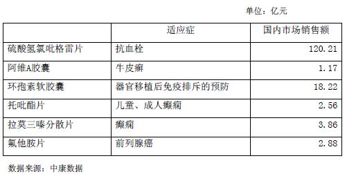 在此前哈药集团发布的半年报中,哈药集团的产品领域主要集中在抗感染,感冒药,心脑血管,消化系统,抗肿瘤,营养补充剂等,此次收购品种既有抗血栓的硫酸氢氯吡格雷片、适应症为前列腺癌的氟他胺片,也有治疗牛皮癣的阿维A胶囊和治疗癫痫的拉莫三嗪分散片,二者对比,哈药集团一方面巩固了现有的产品基础,另一方面也扩充了其原有产品线。