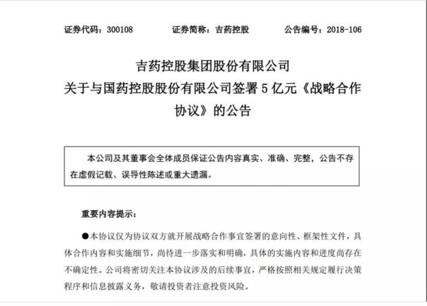 公告表示,吉药控股拥有医药工业的产品资源和服务资源优势,国药控股拥有医药商业的渠道资源和信息资源优势。