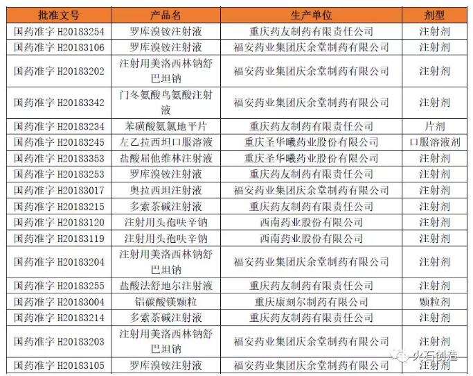 表 1 重庆市2018年1-8月获批药品情况