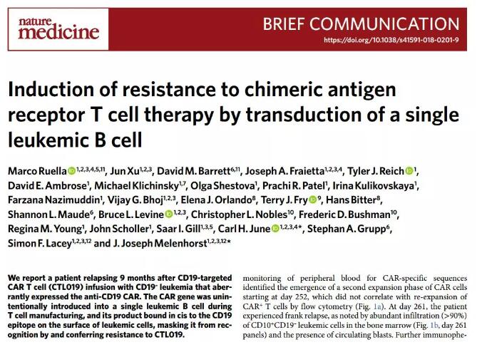 《Nature Medicine》10月刊登了一篇有关癌细胞混入CAR-T回输的细胞中使得患者产生耐受而死亡,该事件将成为过继细胞疗法生产质量控制的一个重要警示案例。该事件讲述的是一个接受CAR-T细胞(靶向CD19)治疗的患者于9个月后复发的B急淋病历,主要原因是该患者体内出现了异常表达CAR元件的CD19阳性白血病B细胞:在制备T细胞的过程中,CAR基因被整合至单个白血病B细胞基因组中,并在白血病B细胞膜上高表达,与B细胞表面的CD19结合后实现了自我掩蔽,从而躲过了回输CAR-T细胞(CTL019)的追杀并赋予了白血病B细胞自身抵抗能力。