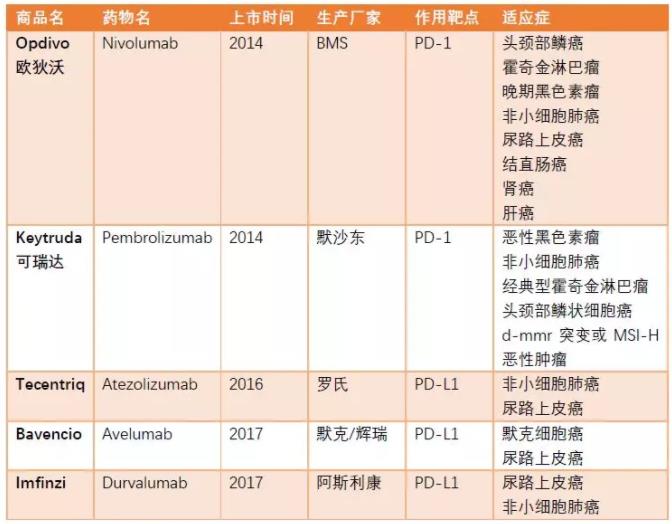 2018年6月15日,中国食品药品监督管理局正式批准Opdivo(欧狄沃)上市治疗非小细胞肺癌,是我国上市的首个PD-1抑制剂。2018年7月25日,中国食品药品监督管理局又批准了Keytruda(可瑞达)用于经过系统性治疗后的晚期黑色素瘤患者。