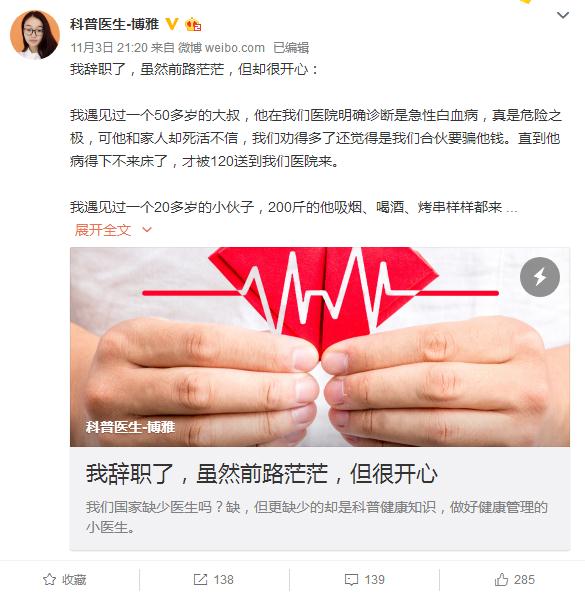 近日,曝光云南白药牙膏含处方药氨甲环酸的医师@科普医生博雅在微博发文,宣布其已正式从三甲医院辞职。