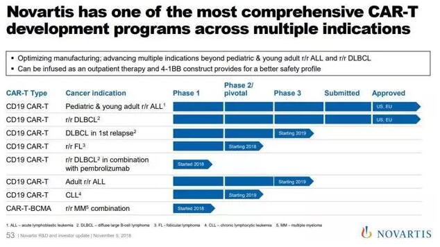 显而易见是,与吉利德相比,诺华作为首个上市的CAR-T治疗产品,其上市1周年累计销售额相形见绌,不过诺华正在进行多种适应症的开发,计划以适应症种类取胜。