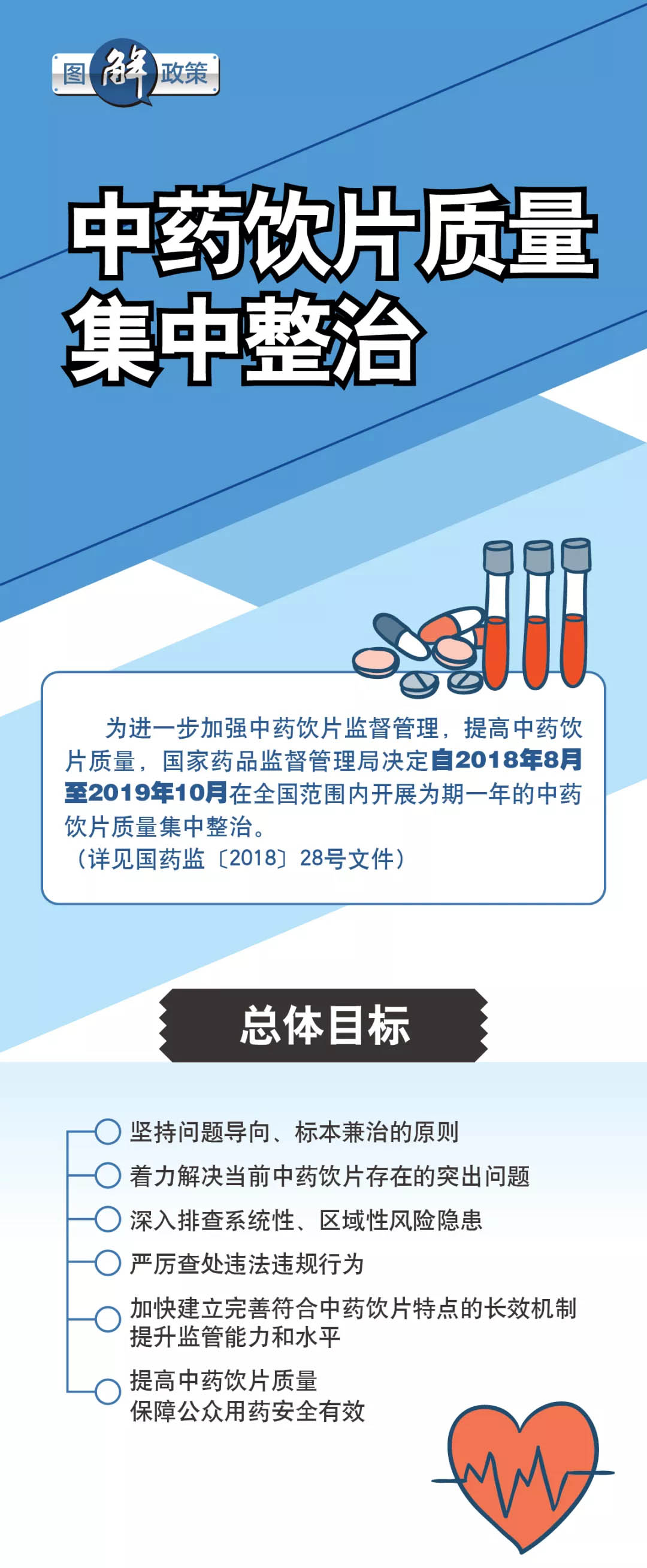 中药饮片是中药的重要组成部分,既可以用于中医临床配方使用,也可以用于中成药生产,其质量关乎人民群众用药安全有效。近年来,各级药品监管部门持续加大对中药饮片监督检查和抽检力度,依法查处和曝光违法违规企业和不合格产品,中药饮片总体质量状况有所好转,但存在的问题仍不容乐观。为进一步加强中药饮片监督管理,提高中药饮片质量,国家药品监督管理局决定在全国范围内开展为期一年的中药饮片质量集中整治。