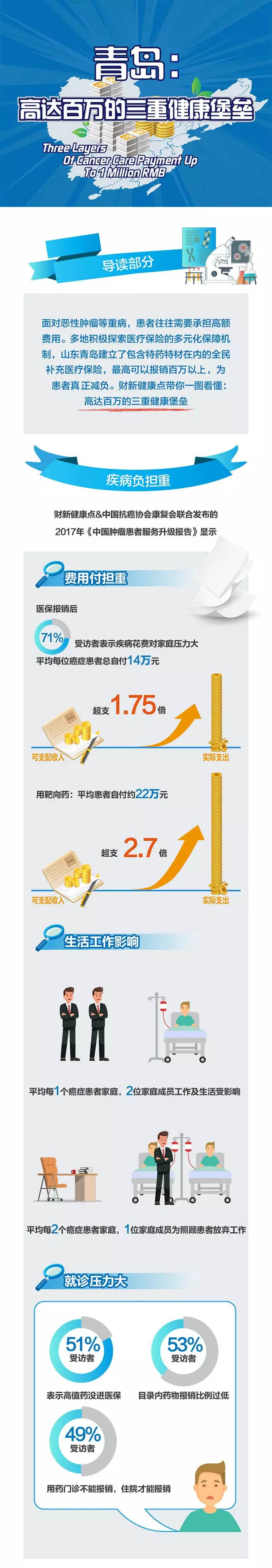有基于此,山东青岛建立了包含特药特材保障待遇在内的全民补充医疗保险,算上原有的基本医保、大病医保,参保居民已能享受最高达到100万元的报销额度。对癌症患者、医保基金的“减负效应”究竟如何实现?财新健康点带您一图读懂——