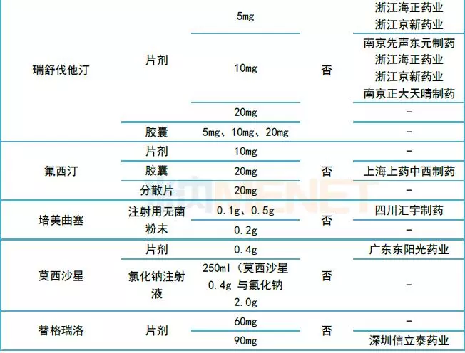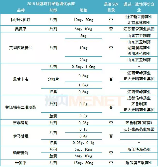据米内网统计,新版基药目录中有14个新增的化学药品种已经有企业通过了(或视同通过了)一致性评价,其中阿托伐他汀、奥氮平、艾司西酞普兰、吉非替尼、米氮平5个品种进入新基药目录的对应剂型与规格均已有企业通过了一致性评价。