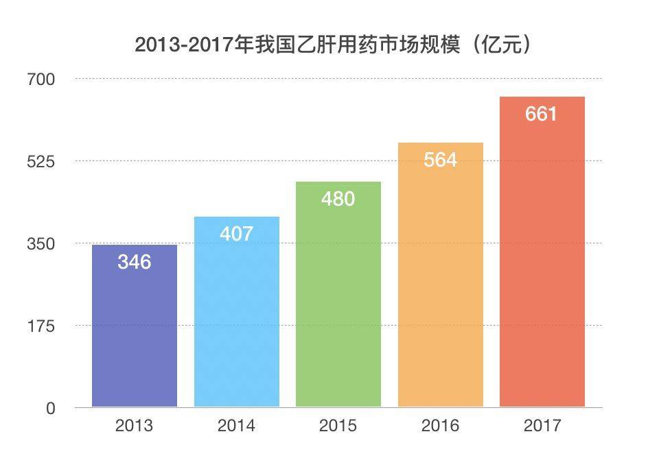 我国作为乙肝大国(注:世界卫生组织2015年曾表示,中国约有9000万乙肝病毒慢性感染者),对乙肝药物的需求与关注也格外大。长城国瑞证券研究所此前在其研报中测算,我国乙肝用药的市场规模到2017年达660.71亿元左右。