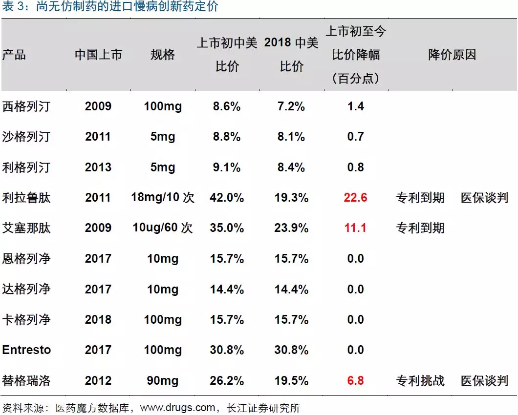 进口新药定价并没有更低,部分降价是因为专利悬崖
