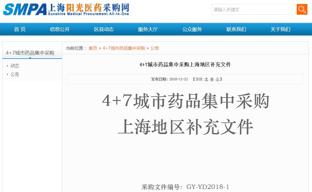 根据联合采购办公室发布的《4+7城市药品集中采购文件》,为做好上海地区中选药品的采购执行工作,上海市医药集中招标采购事务管理所(以下简称:工作机构)就上海地区,企业申报、药品配送、质量检测、三方协议、货款支付、中选品种使用等内容发布补充文件,具体如下: