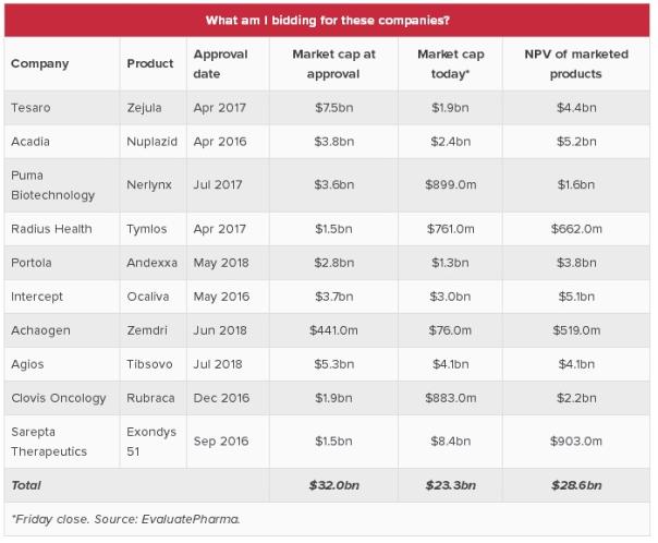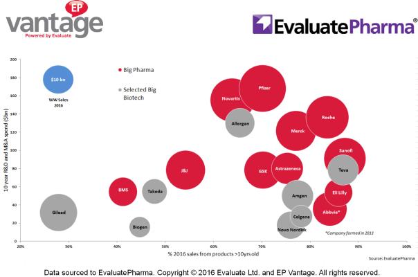 随着市场的动荡以及生物技术公司估值的下降,现在可能是各大巨头开始展开收购的好时机。以上的分析揭示,与行业其他公司相比,包括罗氏、赛诺菲、艾伯维、新基在内排名垫底的巨头可能更需要注入新鲜的血液,以减轻对老产品的依赖。EvaluatePharma也列出过比较有吸引力且拥有上市产品的并购目标清单: