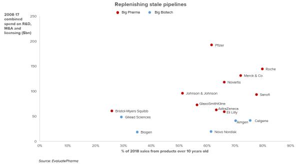 另一家榜单排名垫底的公司赛诺菲最近也开始转向并购,但这一策略是否会能够得到回报仍有待观察。