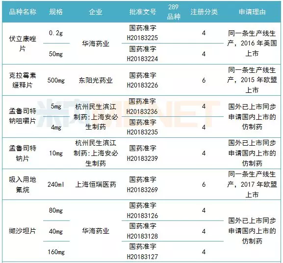 表1:已通过一致性评价的产品