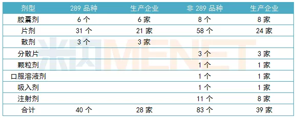 123个品规已通过一致性评价,40个为289品种