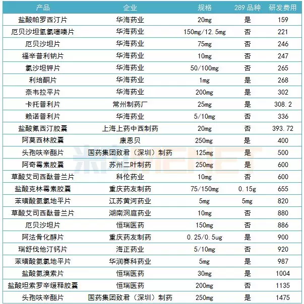 从部分上市公司的公告中可以看出,一致性评价的研发投入最少的一个品种是华海药业的盐酸帕罗西汀片(20mg)才159万元,而国药集团致君(深圳)制药的头孢呋辛酯片(250mg)则花了1475万元,这个落差实在让企业家们心里凉凉的。