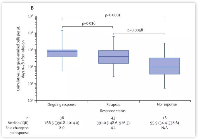 注射CAR-T细胞后0-28天浓度变化(图片来源:NEJM)