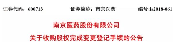 12月5日,南京医药发布《关于收购股权完成变更登记手续的公告》。收购南京华东医药有限责任公司100%股权及南京金陵大药房有限责任公司30%股权之关联交易的事,定了。