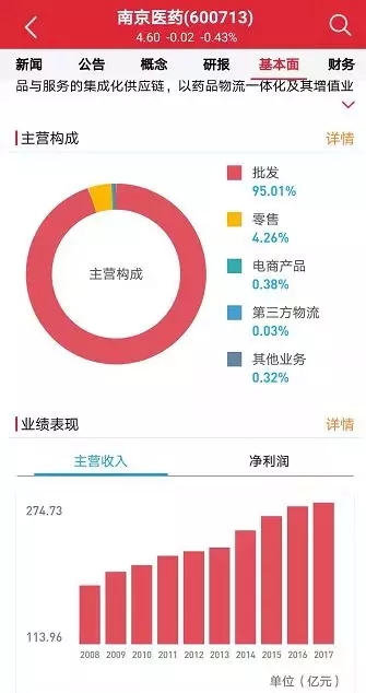 南京医药三季报显示:营业总收入225.96亿元,同比增长10.48%;净利润1.97亿元,同比增长13.74%。
