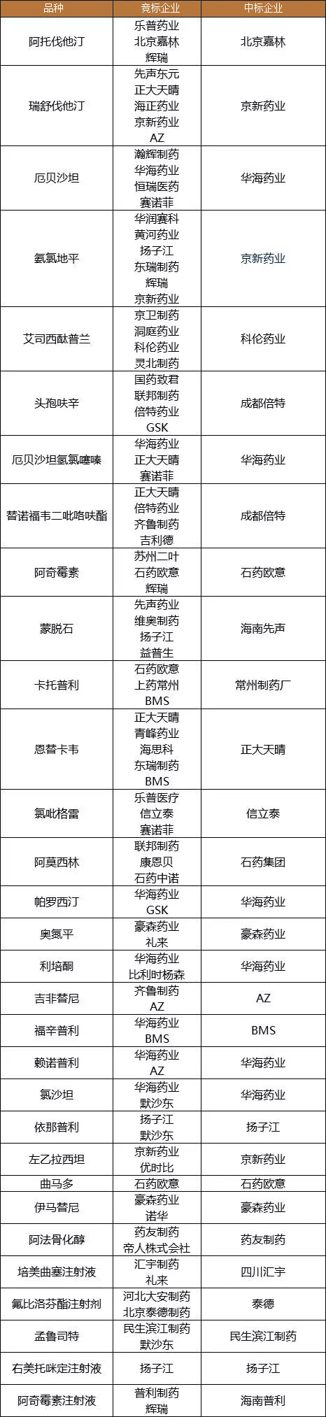 ≤2家的,价格降幅排名前列者中选,而排名靠后的需要参照≥3家的平均降幅确定议价谈判最低降幅。这些品种包括: