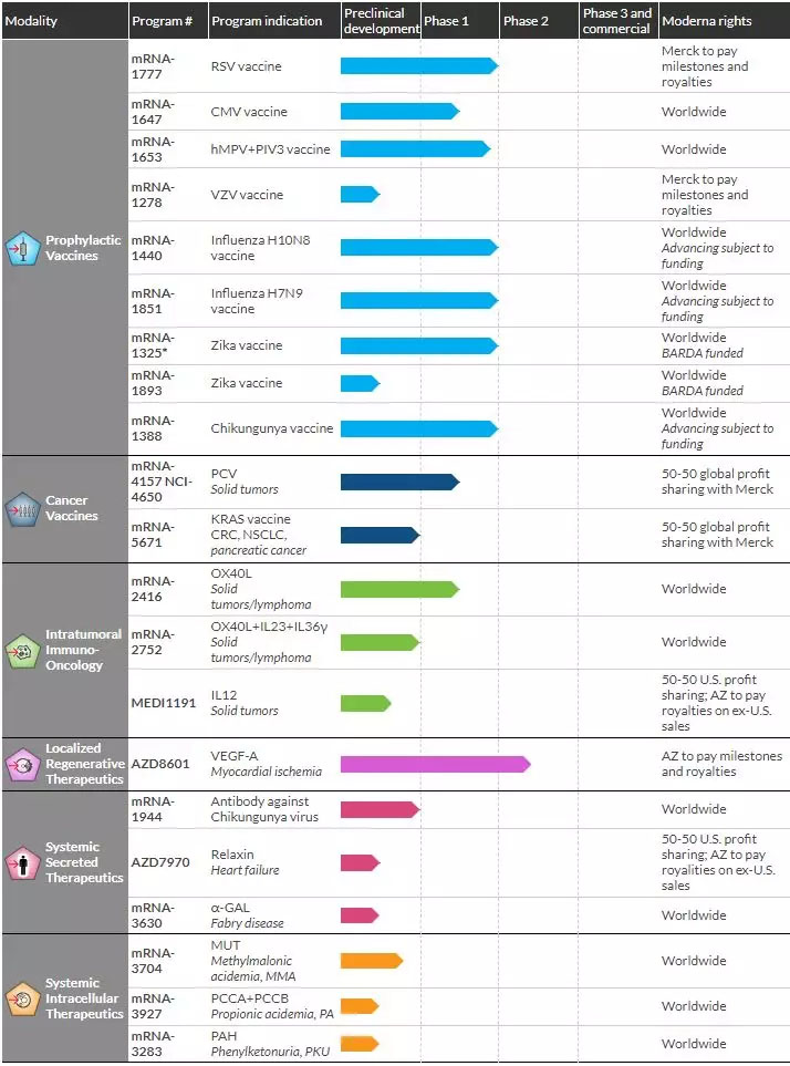 Moderna Therapeutics研发管线(图片来源:Moderna Therapeutics官网)