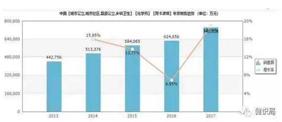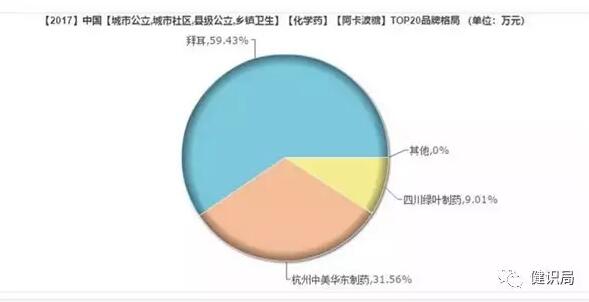 阿卡波糖,是国内糖尿病第一大口服用药,其市场之大可想而知。根据公开资料引用米内网数据显示,阿卡波糖2017年公立医疗机构市场用药金额高达74.2亿元,增长率超过18%。预计加上零售市场合计规模在85亿元左右。
