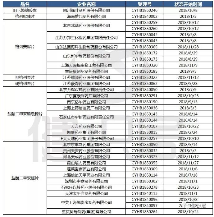 根据国家药监局药审中心相关资料显示,除前述已经通过仿制药一致性评价的阿卡波糖和二甲双胍外,还有多个糖尿病口服剂大品种如格列吡嗪、格列美脲、瑞格列奈、那格列奈等品种均有企业申报仿制药一致性评价申请,合计申请受理号有34个。