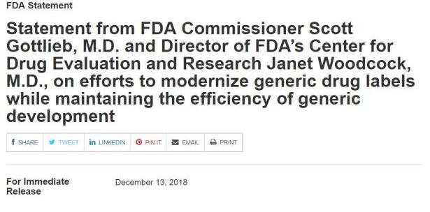 而上周四(12月13日)发布的一份声明,美国FDA表示将终止这一可能导致混乱局面的措施,因为该政策或使由不同制造商制造的同一种药物出现多种不同的标签信息和安全数据。面对仿制药和品牌药上不同的标签,患者和处方者可能会感到极大的困惑。