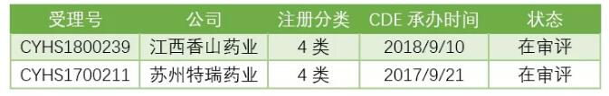 在研企业中,江西香山药业和苏州特瑞药业按新4类报产,其中苏州特瑞获得优先审评资格,领先一步,有望在2019年率先获批上市。南京优科12月18日刚开始做BE试验,招募患者。