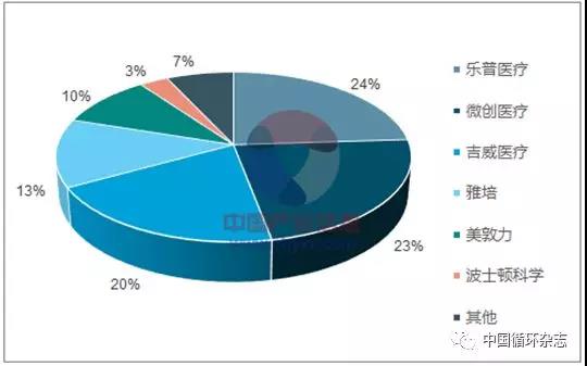 从2017年市场份额来看,全球市场上,雅培、波士顿科学和美敦力三家盘踞三甲,市占率分别为28%、26%、23%;国内心脏支架行业约 80%的市场份额已被国产品牌占领。