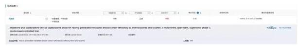 多中心验证性III期临床研究(NCT02253459)显示,优替德隆+卡培他滨 与卡培他滨相比可使晚期乳腺癌患者mPFS显着延长(8.44 vs 4.27个月),同时能够显着改善患者总生存期、客观缓解率。UTD1血液学毒性低、胃肠道反应轻微、肝肾毒性也不明显,具有良好的安全性。该结果已发表于《Lancet Oncology》。