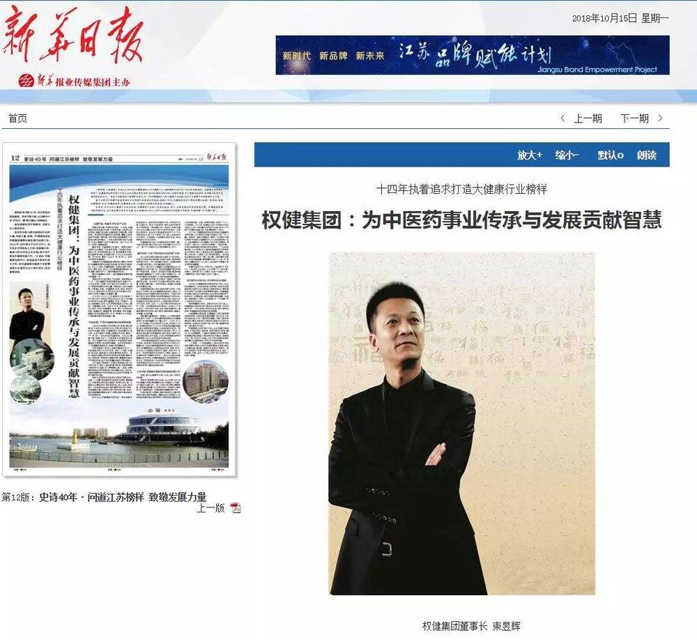而到了2018年,权健的形象更加正面,束昱辉甚至还登上了江苏《新华日报》。