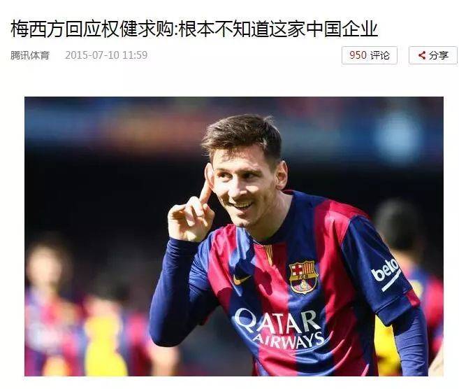 无数的球迷都站在了权健的这一边。利用足球塑造形象成为非常好用的手段,束昱辉甚至在接受采访时称,曾报价询问梅西来华踢球的可能性,但被索要3亿欧元。不过,梅西的回答却颇让人感到尴尬。
