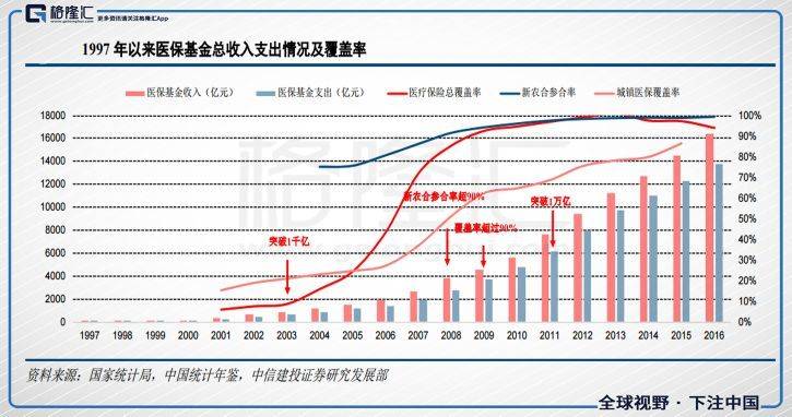凡有整合,必有机会。2012~2015年新农合的收入和支出的增长,加之新版基药目录的出台,能渗透进基层医疗系统的相关标的乘上了这一趟快车,华东医药(000963.SZ)、通化东宝(600867.SH)都是这时候开始崛起。