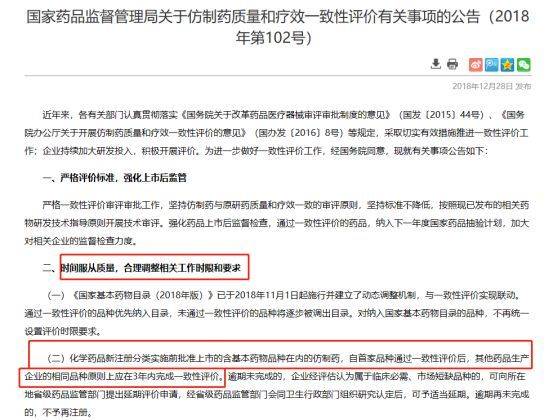 低质量的仿制药,虚高的仿制药价,就用“一致性评价”和“带量采购”两大政策。根据Insight仿制药一致性评价数据库,截止到2018年12月30日,共有74个品种(106个品规)已通过一致性评价,167个品种(331个品规)已提交补充申请,99个品种(120个品规)在BE试验中。其中289目录的仅通过了31个,大限将至,在2018年12月28日,NMPA(国家药品监督管理局)发布最新公告,289目录一致性评价时限取消,只要第一个品种过了一致性评价,同品种的企业在3年内完成就可,没有完成的,可以在申报省级药品监管部门寻求延期,延期如果再没有完成,就不给注册了。这个期限放的,相较于之前,可以说松了很多,这一年拼命在做一致性评价的药企们辛苦了。
