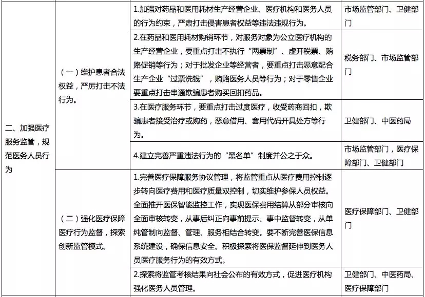 在医疗服务环节,《通知》明确要重点打击过度医疗,收受药商回扣,欺骗患者接受治疗或购药,恶意借用、套用代码开具处方等行为。