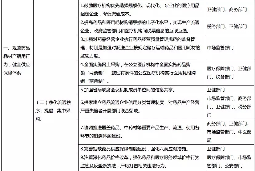 2018年8月23日,国家卫健委、国家医保局、市场总局、公安部、等九部委联合印发《2018年纠正医药购销领域和医疗服务中不正之风专项治理工作要点》,明确要求要重点打击不执行“两票制”、虚开税票、贿赂促销等行为。