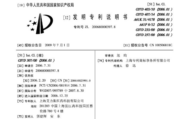 2018年,信立坦凭借“咪唑-5-羧酸类衍生物、制备方法及其应用,专利号ZL200680000397.8”再次荣获中国专利金奖。